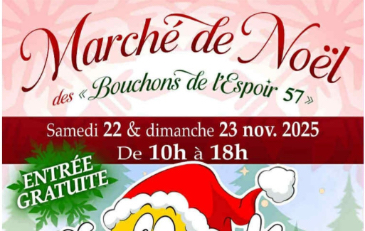 Le marché de Noël des Bouchons de l’espoir 57 aura lieu le samedi 22 et dimanche 23 novembre….