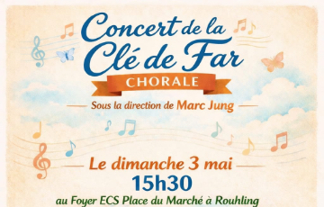 Le club loisirs vous propose un concert par la chorale « La clé de Far » le dimanche 3 mai à 15h30 à l’Espace Culturel et Sportif de Rouhling.
