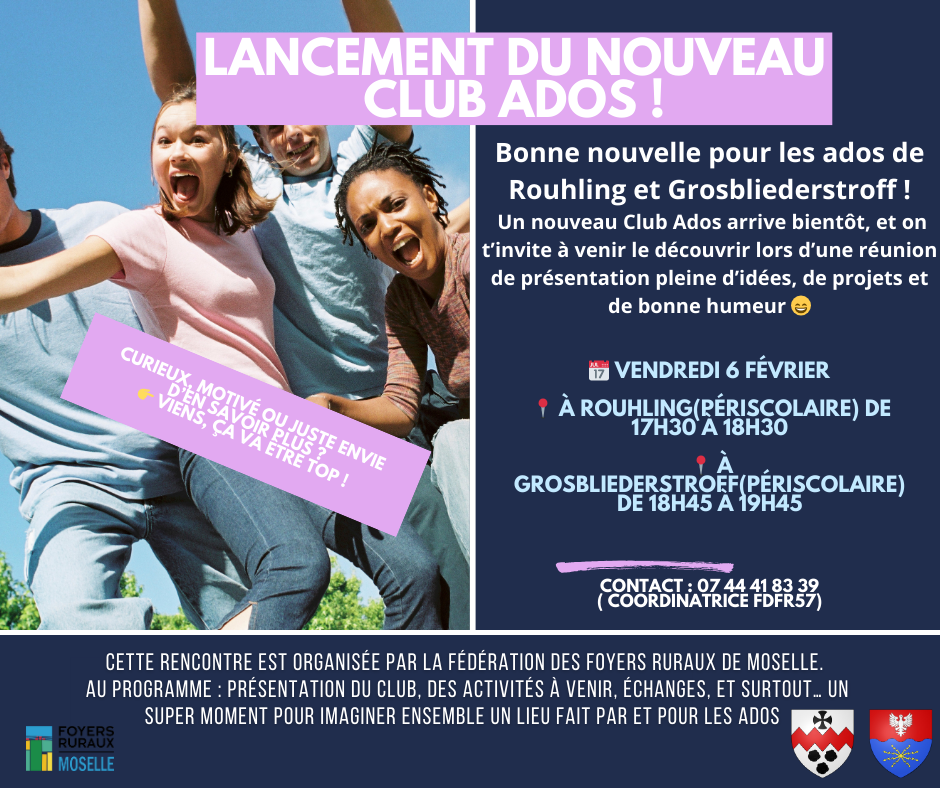 Un nouveau Club Ados arrive bientôt, et on t’invite à venir le découvrir lors d’une réunion de présentation pleine d’idées, de projets et de bonne humeur.