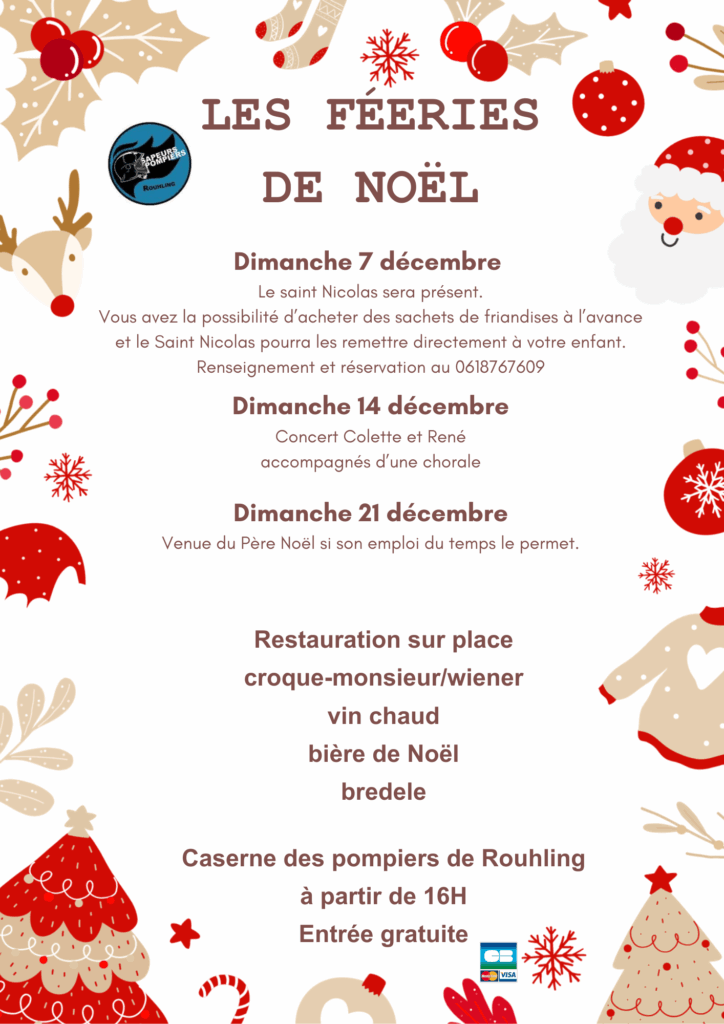 Les dimanches 7 – 14 et 21 décembre à partir de 16h à la Caserne des pompiers.