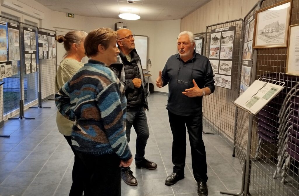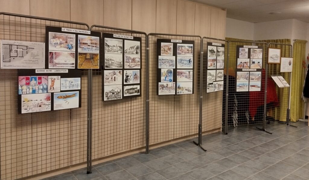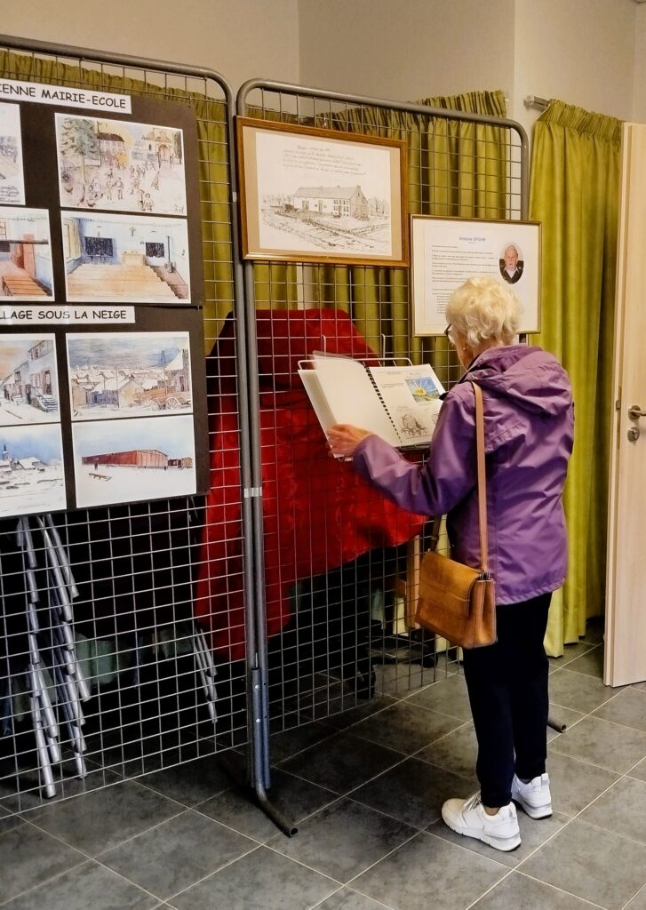Cette exposition proposait un voyage dans le temps à travers le regard sensible et précis d’Antoine. Le public a pu découvrir une série d’œuvres retraçant des moments marquants de l’histoire locale : les maisons d’autrefois, l’exode de 1939, le village en ruine en 1940, la libération après la seconde guerre mondiale, mais aussi la vie communale d’autrefois avec les anciens métiers, les écoles, l’église, …. Chaque dessin témoignait d’un attachement profond à la mémoire collective et à la transmission du passé.