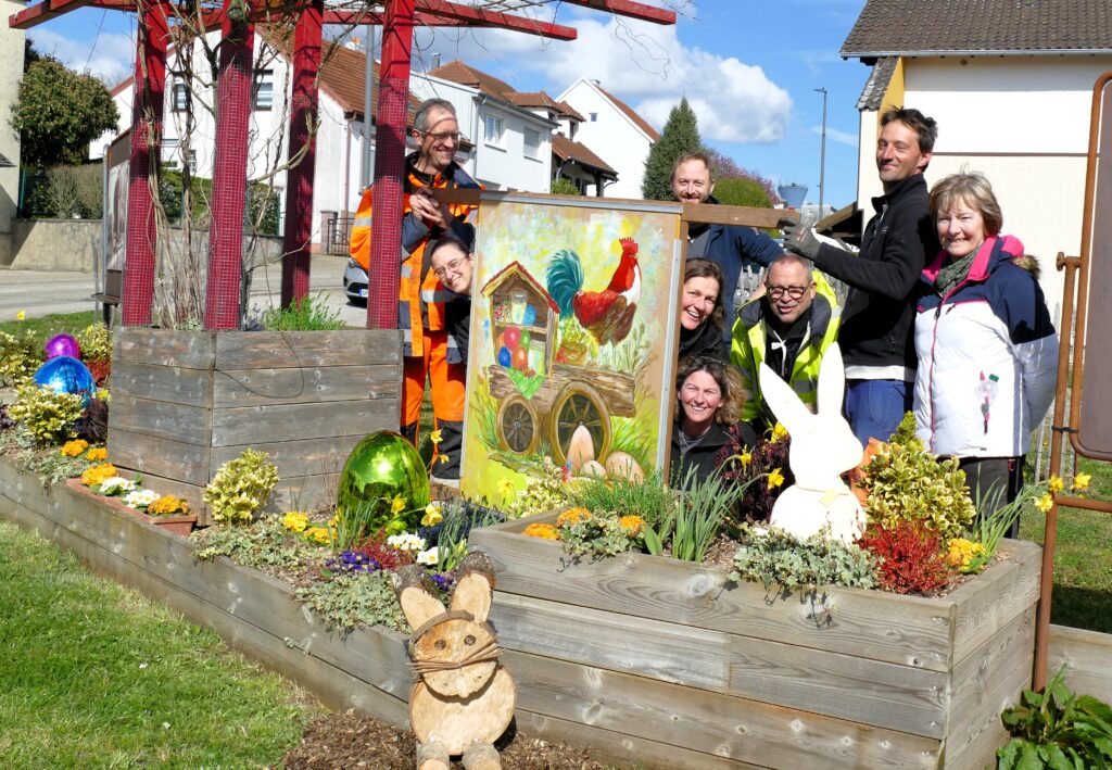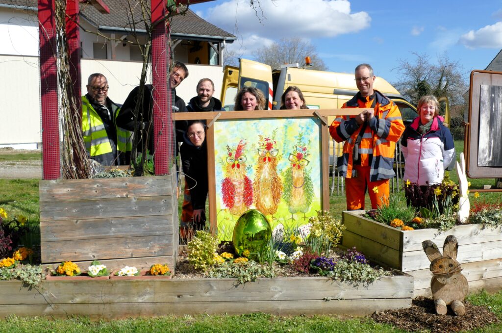 Sous la houlette d’Elisabeth Tabaczinski, conseillère municipale déléguée en charge du cadre de vie et du fleurissement, les agents du service technique ont conçu fabriqué et installé des décorations de Pâques dans la commune.